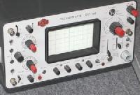 Tiroir base de temps. Base de temps principale de 2ns division à 5s division. Synchronisation jusqu'à 200 MHz. Indications alphanumériques à l'écran du tube cathodique. Dimensions environ 6,8 x 12,7 x 36 cm.