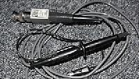 Sonde d'occasion pour oscilloscope Hewlett-Packard 10008B. Prix indiqué pour sonde en bel état. Atténuation 1 X. Capacité 60 pF. Tension maximale 600 V. Longueur environ 1,8 mètre.