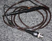 Sonde d'occasion pour oscilloscope TEKTRONIX P6010. Prix indiqué pour sonde en état moyen. Atténuation 10 X. Entrée 10 mégohms. Bande passante 50 Mhz. Tension maximale 500 V DC. Longueur au choix environ 1 mètre ou environ 2,5 mètre.